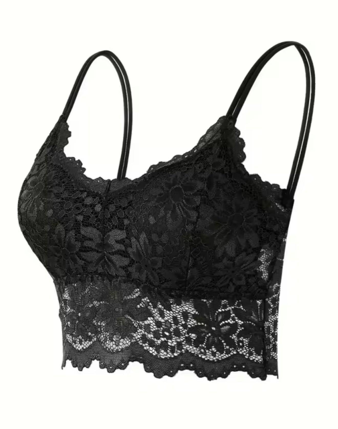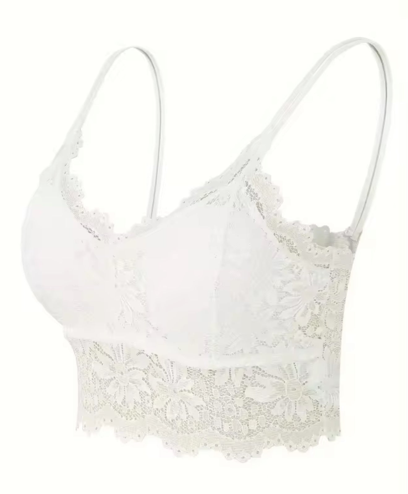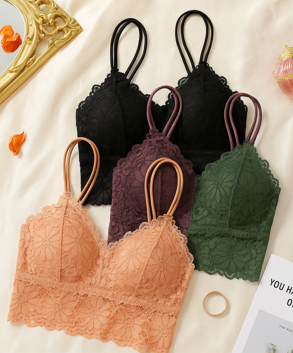 Ce soutien-gorge allie confort et féminité grâce à sa coupe sans armature et sa délicate dentelle florale. Léger, doux et extensible, il épouse parfaitement la silhouette tout en offrant un maintien naturel. Ses bretelles assorties et sa finition élégante en font un choix idéal pour un usage quotidien ou pour se sentir belle en toute simplicité.